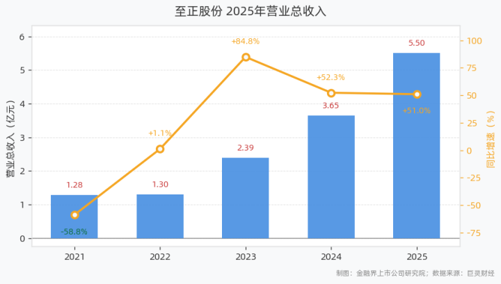 过去五年来,该公司的收入趋势显示,2021年至2025年公司营收分别为1.28亿元、1.30亿元、2.39亿元、3.65亿元、5.50亿元,5年营收复合增长率为33.84%;同期归母净利润分别为-0.53亿元、-0.17亿元、-0.44亿元、-0.31亿元、-0.47亿元,5年归母净利润复合增长率为-2.70%。
